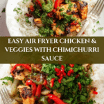 Keywords: air fryer chicken, chimichurri sauce, healthy chicken recipe, air fryer veggies, quick chicken dinner, Latin American chicken, easy air fryer meals, chicken and peppers