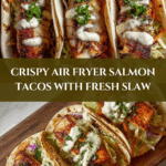 Air fryer salmon tacos with slaw offer a quick, flavorful meal that’s perfect for busy weeknights. The salmon cooks up tender and flaky with a smoky spice blend, while the creamy slaw adds a refreshing crunch. These tacos are easy to assemble and sure to impress.