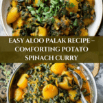 Keywords: Aloo Palak, Potato spinach curry, Indian vegetarian curry, spinach and potato recipe, vegan Indian dish, healthy curry