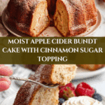 A moist and flavorful Apple Cider Bundt Cake infused with warm spices like cinnamon, ginger, and nutmeg. This delightful cake is baked to perfection and topped with a buttery cinnamon sugar glaze, making it an irresistible treat for fall or any cozy occasion.