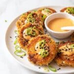 These Asian-Style Tuna Cakes are a flavorful and crispy appetizer or light meal featuring tuna mixed with aromatic vegetables and Asian seasonings, pan-fried to golden perfection and served with a zesty spicy mayo for an extra kick.
