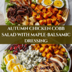 This Autumn Chicken Cobb Salad combines seasonal flavors with hearty ingredients for a satisfying meal. Roasted butternut squash, tender grilled chicken, and crisp greens come together with a sweet and tangy maple-balsamic vinaigrette. It’s perfect for a fresh, colorful lunch or dinner.