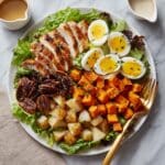 This Autumn Chicken Cobb Salad combines seasonal flavors with hearty ingredients for a satisfying meal. Roasted butternut squash, tender grilled chicken, and crisp greens come together with a sweet and tangy maple-balsamic vinaigrette. It’s perfect for a fresh, colorful lunch or dinner.
