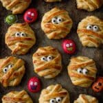 - Decorate and Serve: Once baked, press candy eyes or mini chocolate chips onto each mummy to give them a spooky face. Serve warm and enjoy!