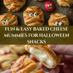 Baked Cheese Mummies are a fun and spooky snack perfect for Halloween or any festive occasion. These cheesy treats wrapped in flaky puff pastry are easy to make and sure to delight both kids and adults alike.