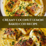This Baked Cod in Coconut Lemon Cream Sauce is a delicate and flavorful dish featuring tender cod fillets baked in a creamy, tangy sauce made with coconut milk, lemon, ginger, and garlic. Perfectly seasoned and oven-baked to flaky perfection, it offers a beautiful balance of citrus freshness and rich coconut aroma, ideal for a wholesome, elegant dinner.