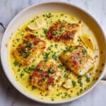 This Baked Cod in Coconut Lemon Cream Sauce is a delicate and flavorful dish perfect for a light dinner. The creamy coconut and zesty lemon sauce complement the tender cod beautifully, creating a fresh and comforting meal.