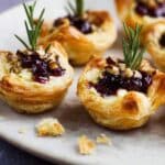 Keywords: cranberry brie bites, baked appetizer, puff pastry appetizer, holiday appetizers, brie cheese recipes, cranberry sauce appetizers