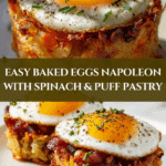 Baked Eggs Napoleon is a delightful and easy brunch dish featuring flaky puff pastry, creamy spinach filling, and perfectly baked eggs. This recipe combines simple ingredients to create an elegant meal that’s sure to impress family and friends.