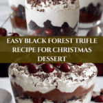 Celebrate the holidays with this indulgent Black Forest Trifle, a layered dessert combining rich chocolate cake, creamy vanilla pudding, juicy cherries, and fluffy whipped cream. It’s an impressive yet easy-to-make treat perfect for Christmas gatherings.