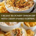 Bloomin’ Onion Dip is a flavorful twist on the classic bloomin’ onion appetizer, transformed into a creamy and crunchy dip perfect for any gathering. This recipe combines crispy seasoned breadcrumbs with a tangy, cheesy base, delivering a crowd-pleasing snack that’s easy to prepare.