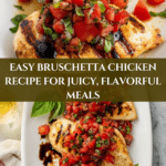Keywords: Bruschetta Chicken, Italian chicken recipe, grilled chicken, fresh tomato topping, healthy chicken dinner, easy chicken recipe