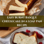 This Burnt Basque Cheesecake in a loaf pan offers a rich, creamy texture with a beautifully caramelized, dark brown top that delivers a deep, burnt flavor contrast. Unlike traditional cheesecakes, this recipe is baked at a high temperature for a rustic crust and a luscious, slightly jiggly center. Using simple ingredients like cream cheese, heavy cream, and minimal flour, it’s an effortlessly elegant dessert perfect for impressing guests or indulging in a comforting treat.