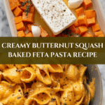 Keywords: butternut squash baked feta pasta, roasted butternut squash pasta, baked feta cheese pasta, creamy squash pasta, easy vegetarian pasta dish, oven roasted pasta sauce