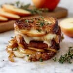 This Caramelized Onion & Apple Grilled Cheese Sandwich is a delightful blend of sweet and savory flavors, featuring golden caramelized onions, crisp honeycrisp apples, sharp cheddar, and creamy brie cheese all layered between rustic sourdough bread. Enhanced with fresh sage butter, this gourmet twist on a classic grilled cheese delivers a comforting yet sophisticated sandwich experience perfect for any meal.