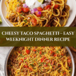 Keywords: Cheesy Taco Spaghetti, one-pan meal, taco pasta, ground beef recipe, quick dinner, Tex-Mex pasta