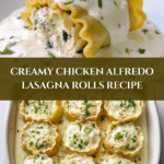 Keywords: Chicken Alfredo, lasagna rolls, creamy pasta, baked pasta, Italian comfort food, shredded chicken recipe