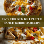 These Chicken Bell Pepper Ranch Burritos are a flavorful and satisfying meal featuring tender chicken seasoned with smoky spices, sautéed bell peppers, creamy ranch dressing, and melted cheddar cheese, all wrapped in warm flour tortillas. Perfect for a quick weeknight dinner or meal prep.