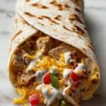 These Chicken Bell Pepper Ranch Burritos are a flavorful and satisfying meal featuring tender chicken seasoned with smoky spices, sautéed bell peppers, creamy ranch dressing, and melted cheddar cheese, all wrapped in warm flour tortillas. Perfect for a quick weeknight dinner or meal prep.