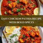 Keywords: Chicken Pathia, Indian curry, spicy chicken curry, tangy chicken dish, tamarind chicken, easy Indian recipe, curry with chicken breasts
