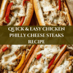 This Chicken Philly Cheese Steak recipe is a quick and flavorful twist on the classic Philly cheese steak, using thinly sliced chicken breasts, sautéed bell peppers, and onions, all topped with melted provolone cheese on hoagie rolls. Ready in about 30 minutes, it’s an easy and delicious meal perfect for any day of the week.