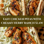 Chicken Pitas with Herby Ranch Slaw combine juicy, spiced chicken breasts with a fresh and tangy slaw packed with herbs. This flavorful and easy-to-make meal is perfect for a quick lunch or casual dinner that feels both satisfying and bright.
