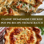This classic Chicken Pot Pie recipe features a flaky homemade pie crust filled with a creamy, savory mixture of shredded chicken, sautéed vegetables, and herbs. Perfectly baked to golden perfection, it’s a comforting and hearty meal ideal for family dinners or special occasions.