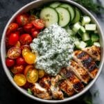 Keywords: Chicken Tzatziki Bowl, Mediterranean chicken bowl, grilled chicken recipe, healthy chicken bowl, tzatziki sauce, Greek chicken bowl, easy dinner recipe