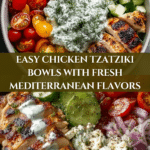 These Chicken Tzatziki Bowls are a vibrant and flavorful Mediterranean-inspired meal featuring tender grilled chicken marinated in aromatic spices, served over fluffy basmati rice with fresh veggies, feta cheese, Kalamata olives, and a creamy, refreshing homemade tzatziki sauce. Perfect for a healthy and satisfying lunch or dinner, this recipe combines simple ingredients to create a balanced and colorful bowl bursting with taste and texture.