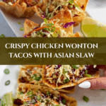 These Chicken Wonton Tacos are a fun and flavorful fusion dish that combines crispy wonton shells with tender, marinated chicken and fresh coleslaw. Perfect for parties or a quick weeknight meal, they offer a delightful mix of textures and Asian-inspired tastes.