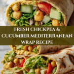 This Chickpea & Cucumber Mediterranean Wrap is a vibrant, healthy, and protein-packed meal that combines creamy chickpeas with fresh cucumber, bell pepper, and herbs, all tossed in a tangy lemon-olive oil dressing. Wrapped in soft pita or tortillas, it’s perfect for a quick, flavorful lunch or dinner with a refreshing Mediterranean twist.