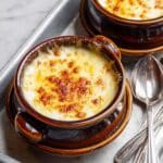 Store leftover soup in an airtight container in the refrigerator for up to 3 days. Reheat gently on the stovetop over low heat, stirring frequently to prevent scorching. If desired, add a little extra broth or water to loosen the soup during reheating. Avoid broiling leftover soup as the cheese won’t melt as well as freshly prepared.