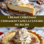 This Christmas Eve Cinnamon-Vanilla Custard Pie is a creamy holiday dessert that brings warmth and comfort to your festive table. With a smooth custard flavored by cinnamon and vanilla, it’s a delightful treat for family and friends to enjoy after a joyful celebration.