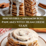 These delicious cinnamon roll pancakes combine the best of two breakfast favorites into one irresistible treat. Swirled with a cinnamon-sugar filling and topped with a creamy glaze, they’re perfect for a special morning or weekend brunch.