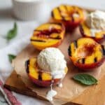 - Serve: Remove the peaches from the oven and serve warm, topped with a scoop of vanilla ice cream for a delightful contrast of temperatures and flavors.