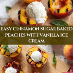 This Cinnamon Sugar Baked Peaches recipe offers a simple and delicious way to enjoy ripe peaches with a warm, spiced sweetness. The peaches are halved, topped with butter and a blend of brown sugar and aromatic spices, then baked until tender and caramelized. Served warm with vanilla ice cream, it’s a perfect easy dessert to satisfy your sweet tooth.