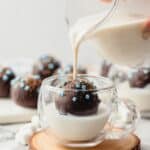 6. Serve Hot Cocoa Bombs: To enjoy, place one hot cocoa bomb in a mug. Pour 6 ounces of hot milk or water over the bomb and watch it melt, releasing the powder, brownie pieces, and marshmallows. Stir well until combined and enjoy your decadent hot chocolate.