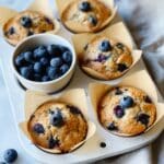 - Fill Muffin Tin and Bake: Using a double cookie scoop or spoon, fill the muffin liners with batter. Optionally, top each muffin with additional blueberries. Bake in the preheated oven for 23-25 minutes, or until a toothpick inserted into the center comes out clean.