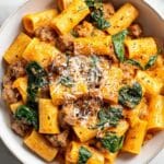 This creamy butternut squash pasta with sausage and spinach is a comforting, flavorful dish perfect for cozy dinners. The rich sauce blends roasted squash and Parmesan, while Italian sausage adds a savory touch. It’s easy to make and sure to satisfy.