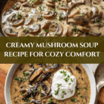 This Creamy Mushroom Soup is a comforting and flavorful dish made with sautéed mushrooms, aromatic onions, garlic, and thyme, simmered in a savory broth and finished with rich cream. Perfect as a warming starter or a satisfying main, this soup balances earthiness with creaminess, offering a luscious texture and depth of flavor that’s easy to prepare on the stovetop.