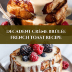 This Crème Brûlée French Toast recipe, also known as Marry Me French Toast, combines the rich, creamy custard flavor of crème brûlée with the comforting texture of classic French toast. Thick slices of brioche are soaked in a luscious egg and cream mixture, cooked to a golden brown, and topped with a caramelized sugar crust, served with a warm crème anglaise sauce for an indulgent breakfast or brunch treat.