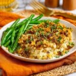 - Finish and Serve: Once done, optionally sprinkle fresh parsley on top for garnish, then serve the comforting chicken and stuffing immediately while warm.