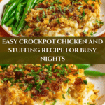 Keywords: crockpot chicken, stuffing, slow cooker dinner, easy chicken recipe, comfort food