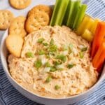This dip pairs well with toasted baguette slices, crackers, pita chips, or fresh vegetable sticks like celery and bell peppers.