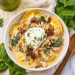 A comforting and creamy Crockpot White Lasagna Soup featuring tender shredded chicken, sun-dried tomatoes, spinach, and broken lasagna noodles in a savory broth enriched with Parmesan and ricotta cheeses. This slow cooker recipe is perfect for an easy weeknight meal with classic Italian flavors in a warm, hearty soup.