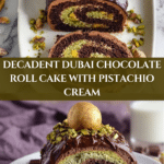 This Dubai Chocolate Roll Cake is a decadent treat combining rich chocolate, crunchy kataifi, and creamy pistachio flavors. Its layers of ganache, pistachio filling, and chocolate mousse create a luxurious dessert perfect for special occasions or indulgent moments.