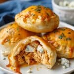 These Easy Buffalo Chicken Bombs are a delicious snack or appetizer featuring shredded chicken mixed with creamy buffalo sauce and cheese, wrapped in crescent roll dough, and cooked until golden and crispy. Perfect for game days or parties, they can be baked, air fried, or fried for a crispy, flavorful bite.