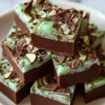 Keywords: mint chocolate fudge, easy fudge recipe, no bake fudge, peppermint fudge, holiday fudge, Andes Mints fudge, chocolate dessert