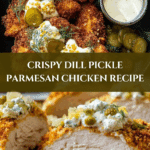 This Exciting Dill Pickle Parmesan Chicken recipe combines tangy dill pickles, savory Parmesan cheese, and tender chicken breasts baked to perfection. Topped with a creamy Greek yogurt and lemon sauce, this dish offers a delightful blend of flavors and textures that’s easy to prepare and sure to become a family favorite.