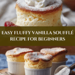 This Fluffy Vanilla Soufflé is a classic French dessert featuring airy, golden soufflés infused with pure vanilla essence. Lightly sweetened and perfectly puffed, these individual soufflés are an impressive yet simple treat, baked to perfection and dusted with powdered sugar for an elegant finish.
